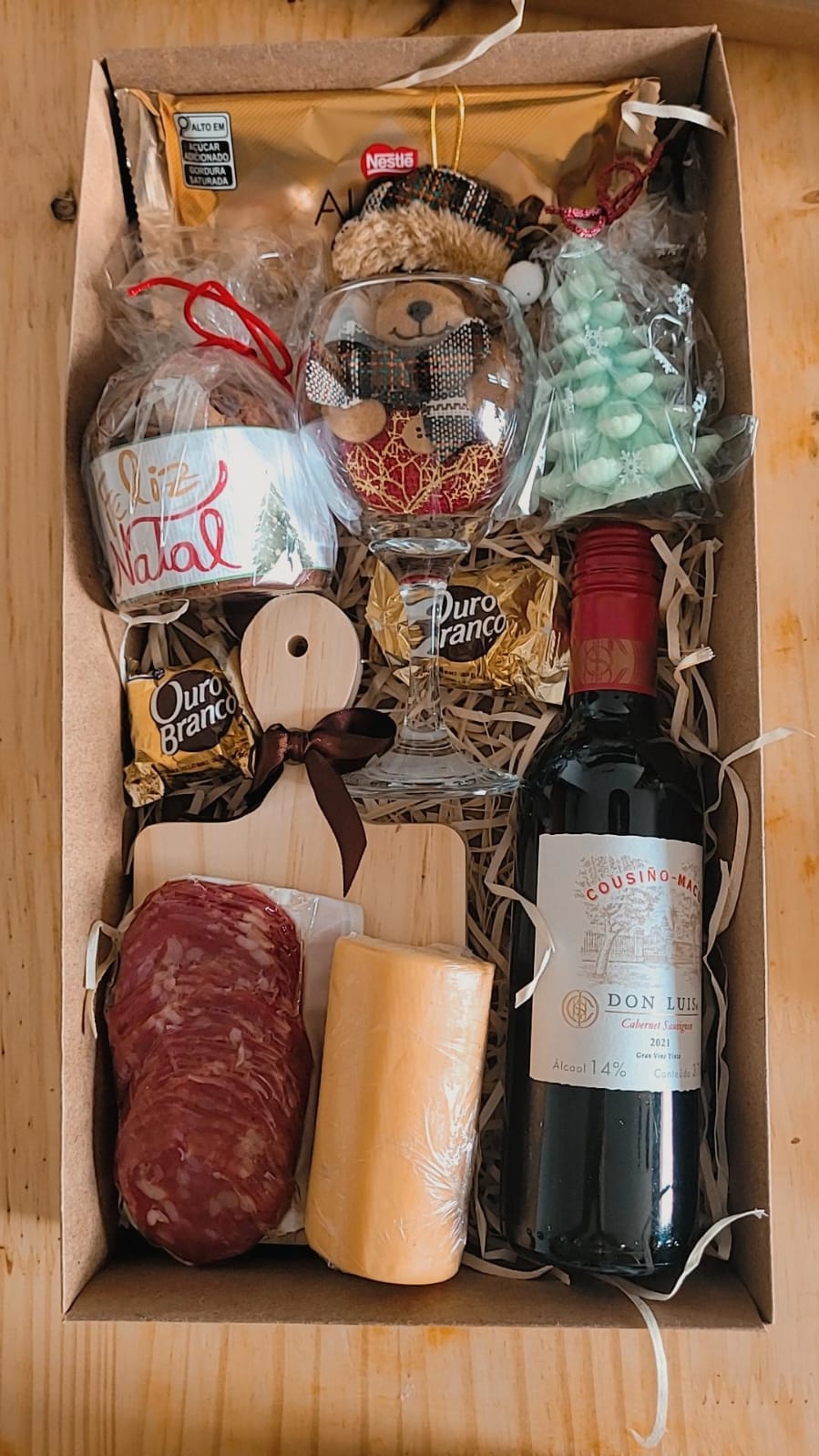 Celebre os sabores e o encanto das festas com esta sofisticada Cesta Box Cabernet, cuidadosamente montada para proporcionar momentos inesquecíveis. Embalada em uma charmosa caixa kraft com enfeites natalinos e uma vela decorativa 3D, esta seleção é perfeita para presentear ou se presentear com estilo.
